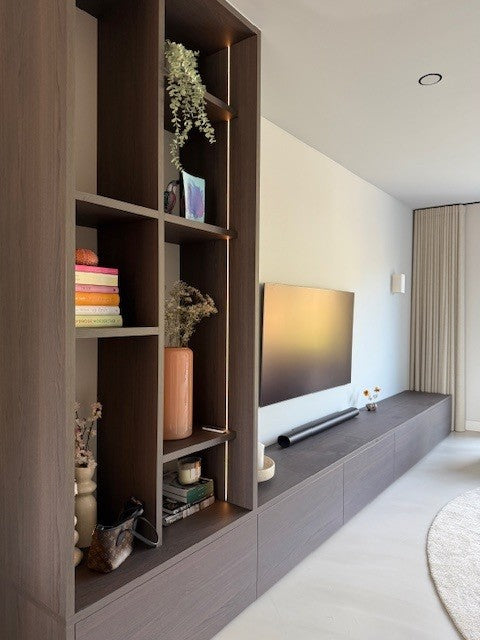 Wij starten elk project met een nauwkeurige inmeting op locatie. Op basis van uw wensen en ideeën maken wij vervolgens een passend ontwerp, inclusief een 3D-tekening, zodat u een realistisch beeld krijgt van het eindresultaat. Al onze meubels worden met zorg en vakmanschap in onze eigen werkplaats op maat gemaakt.